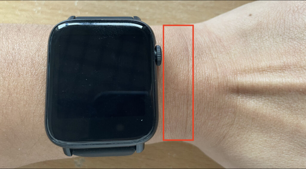 ちなみにですが、こうしたスマートウォッチは手首で計測をするので少し上につけるのがポイントです。