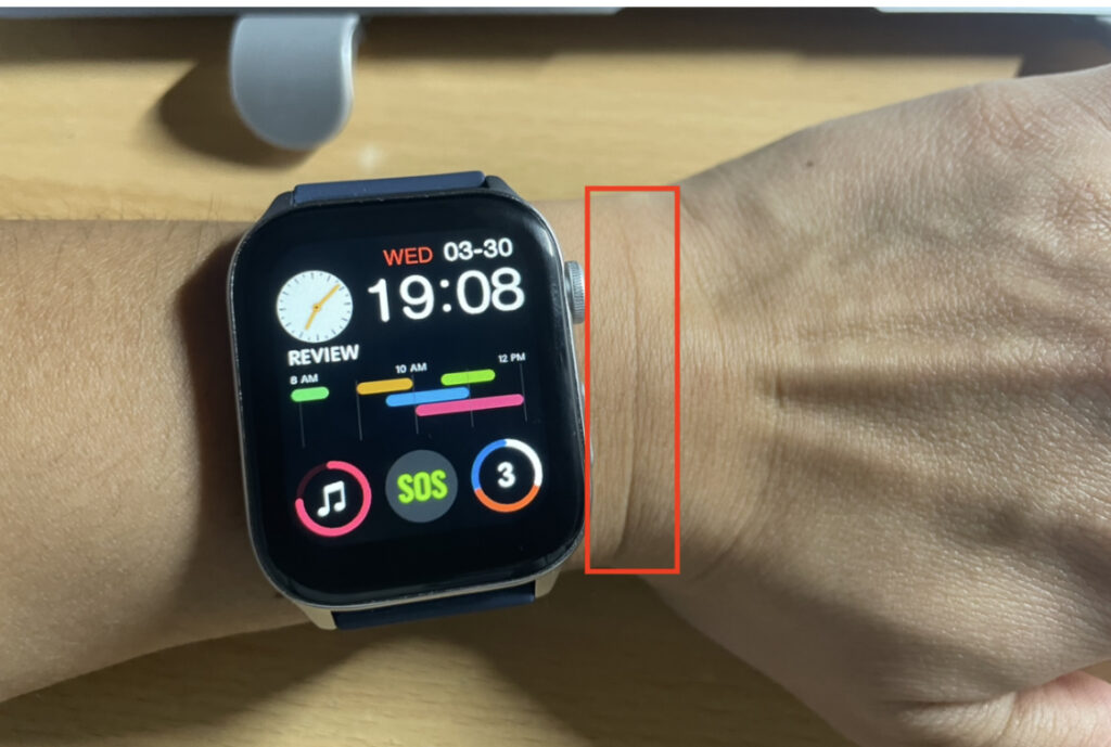 ちなみにですが、こうしたスマートウォッチは手首で計測をするので少し上につけるのがポイントです。